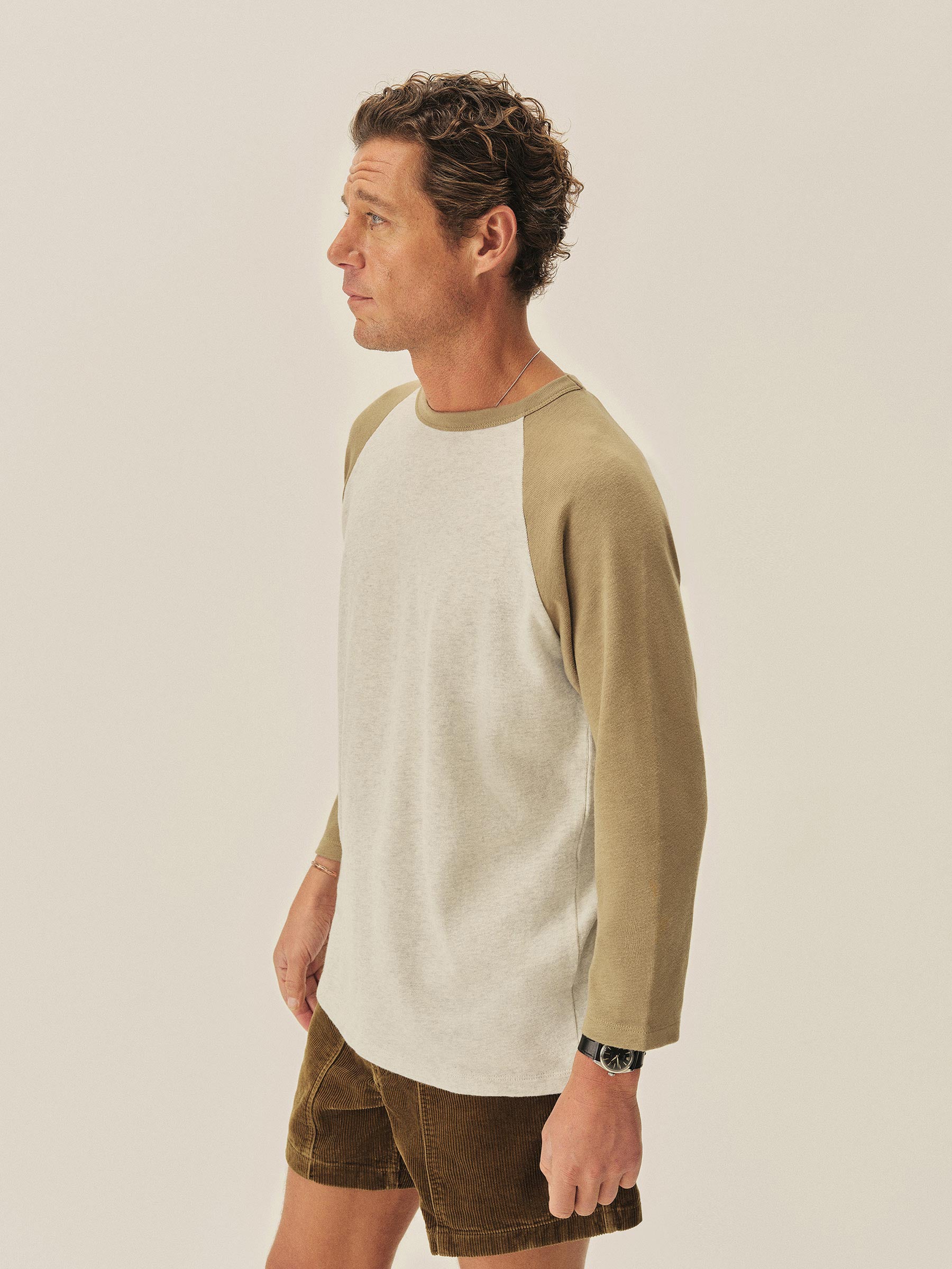 Vintage-inspired 3/4 sleeve baseball tee in a sturdy, soft Field-Spec cotton jersey.