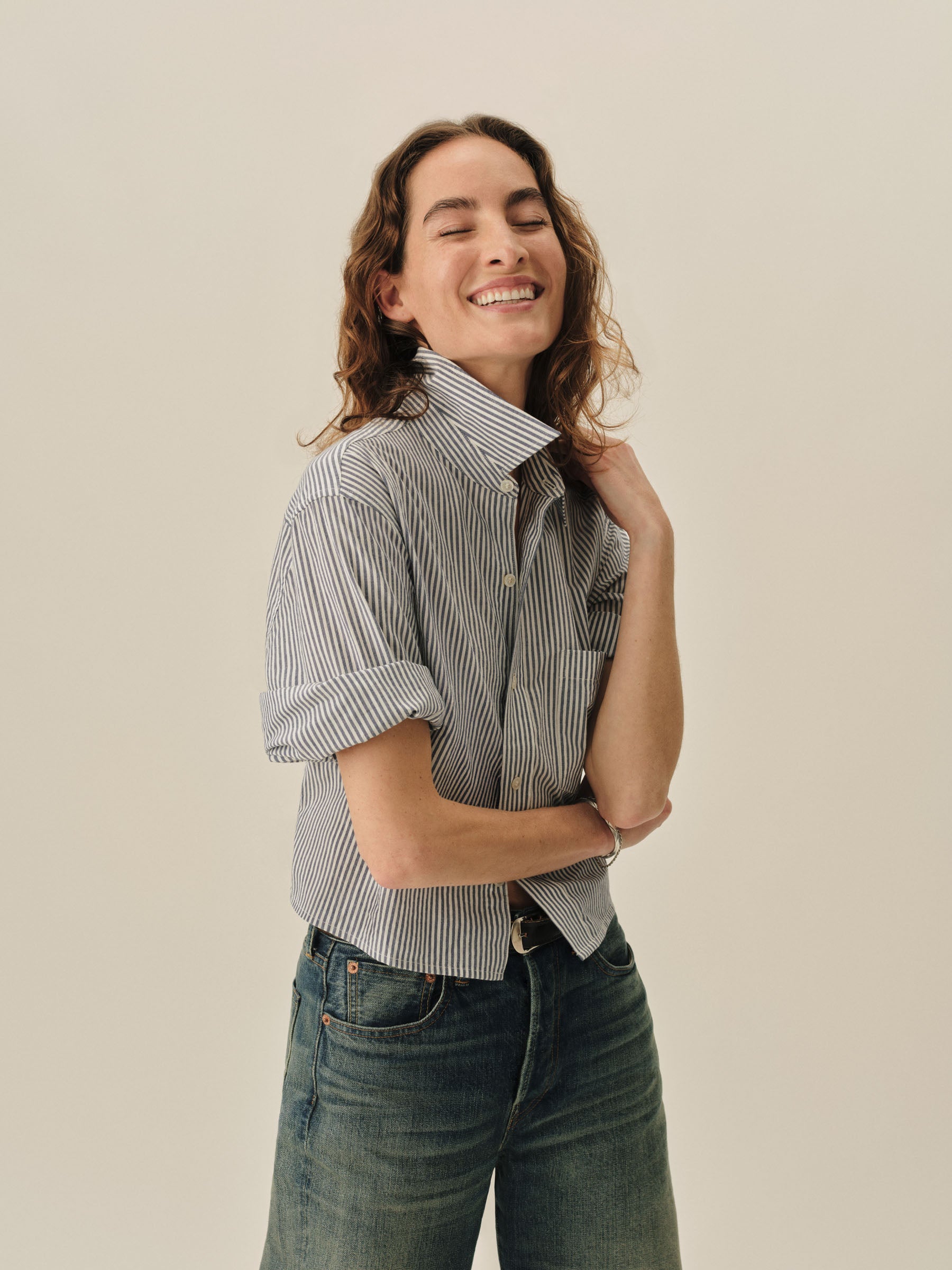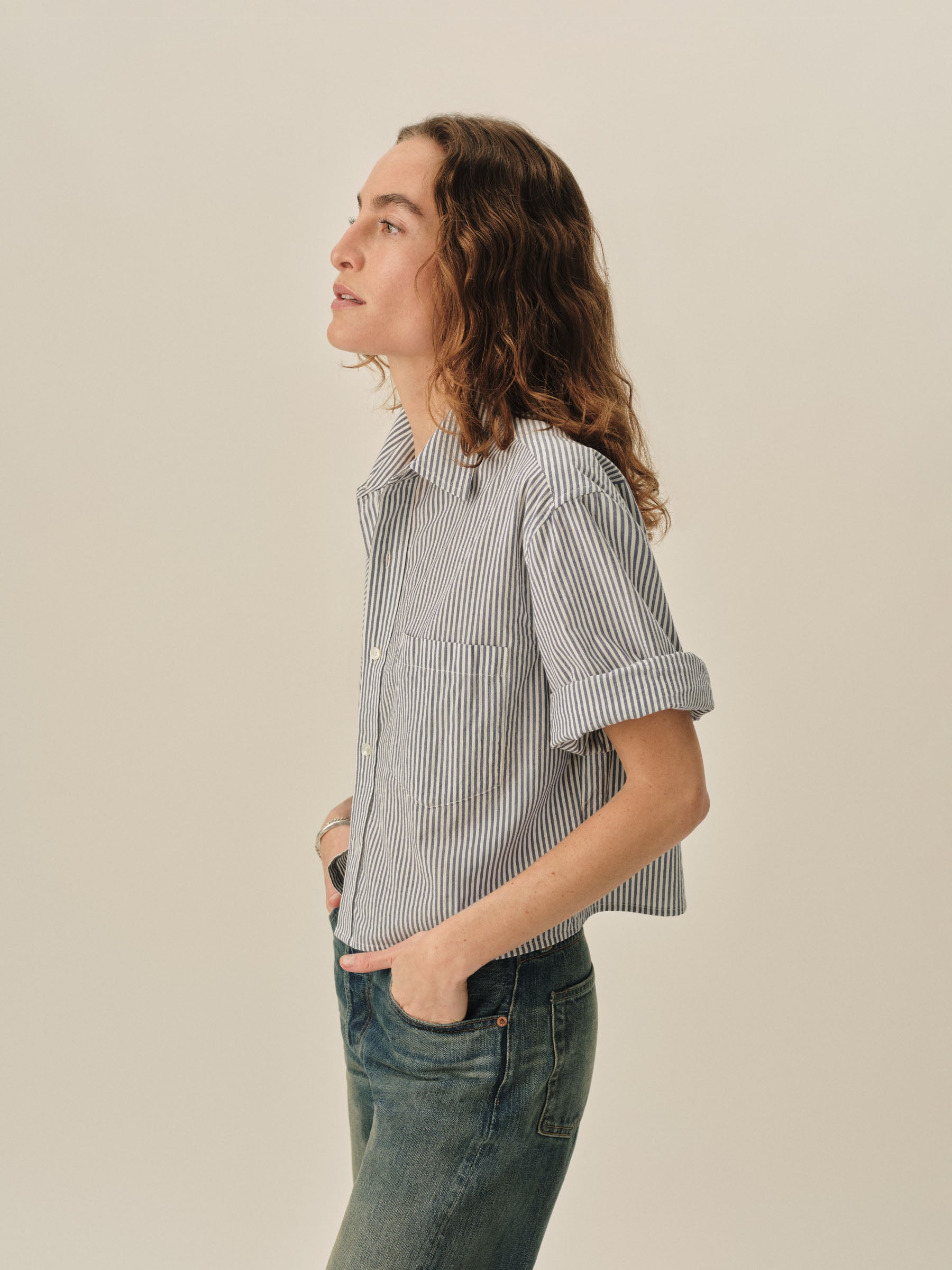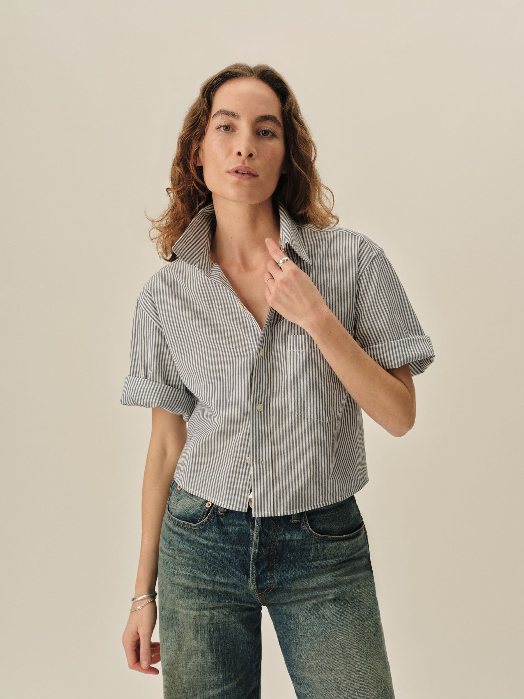 Our Mainstay button-down shirt, reimagined for summer with a cropped body and rolled sleeves in a lightweight cotton weave.