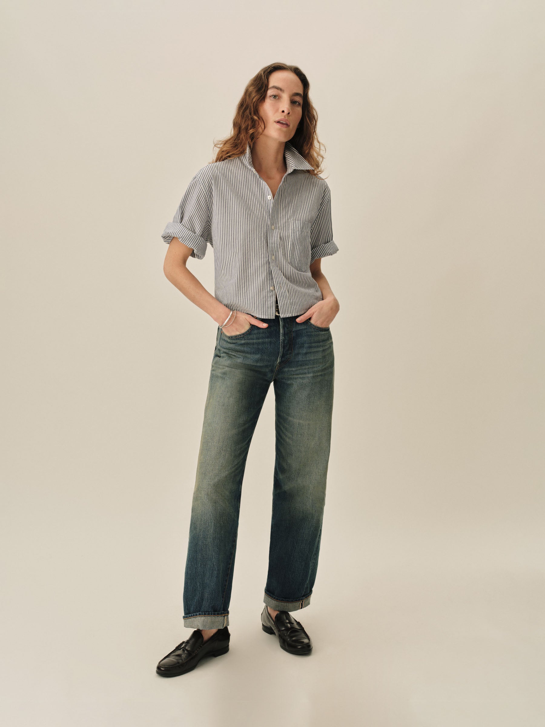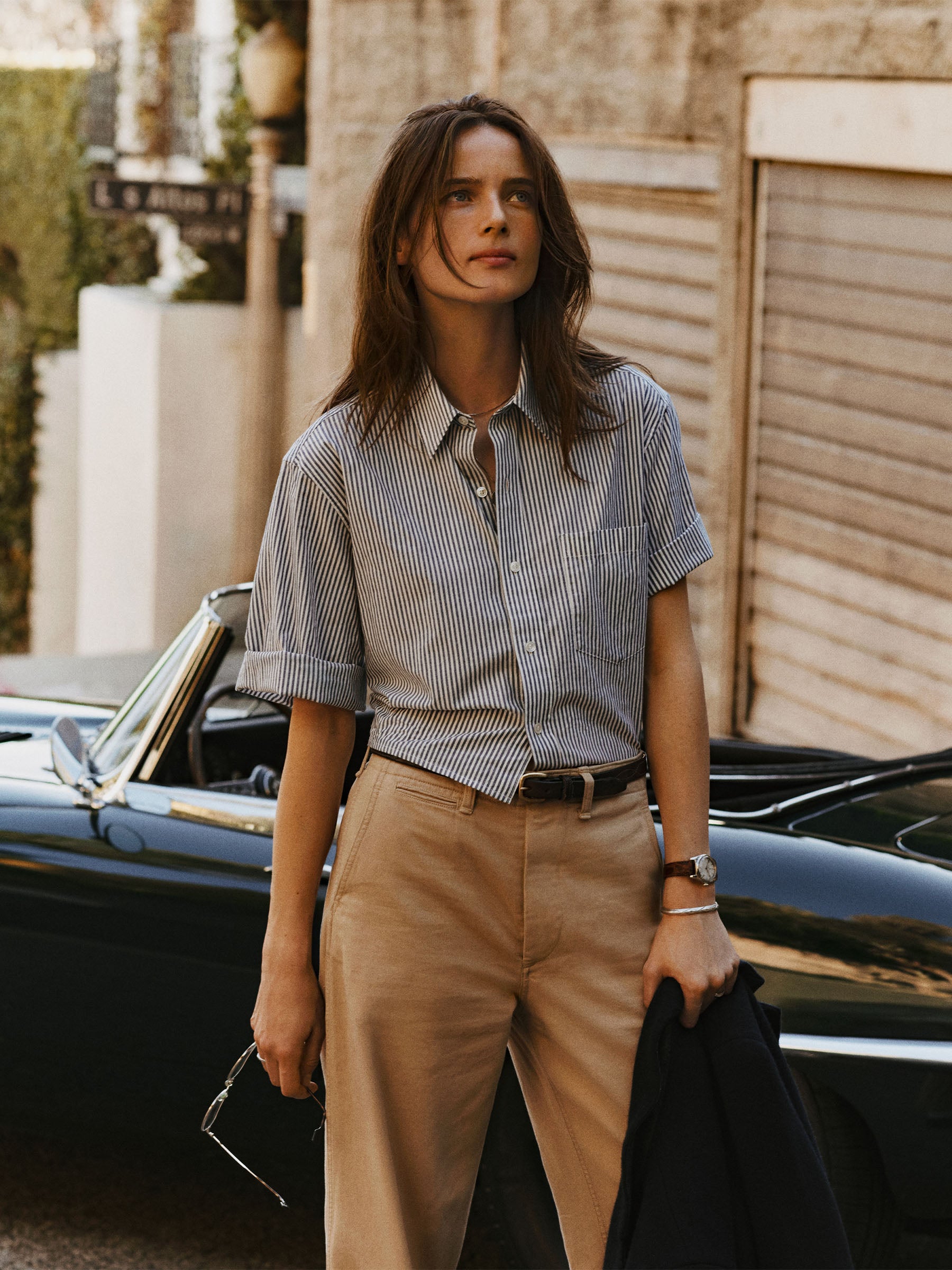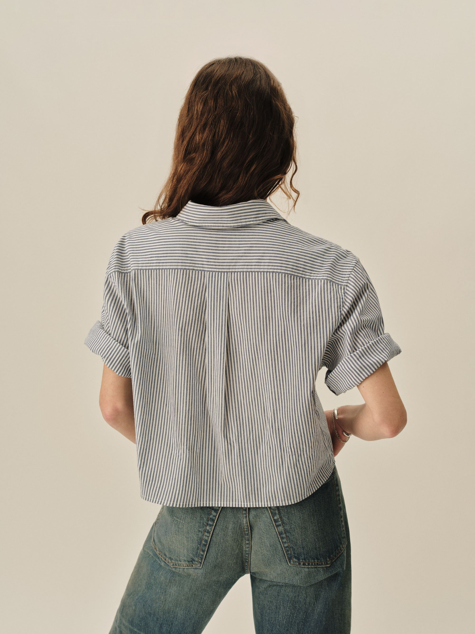 Our Mainstay button-down shirt, reimagined for summer with a cropped body and rolled sleeves in a lightweight cotton weave.