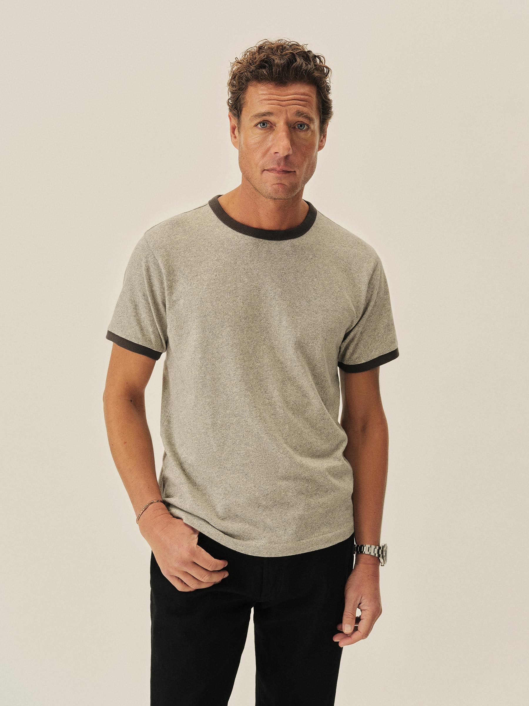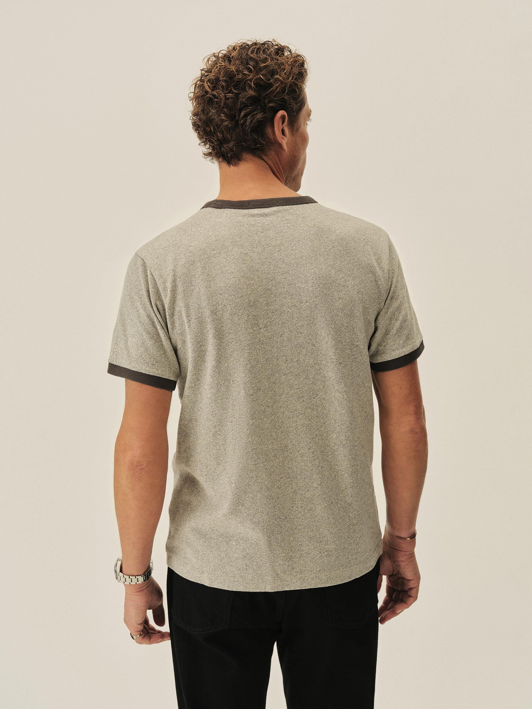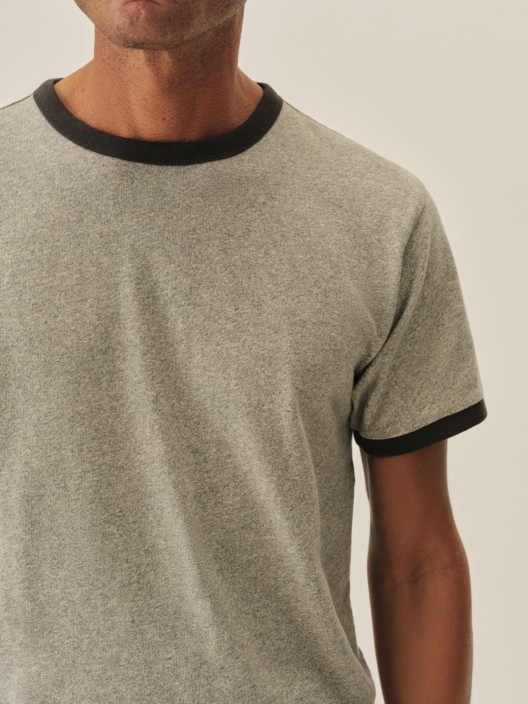 A classic fit ringer tee built from 100% cotton heather jersey with bound rib detailing.