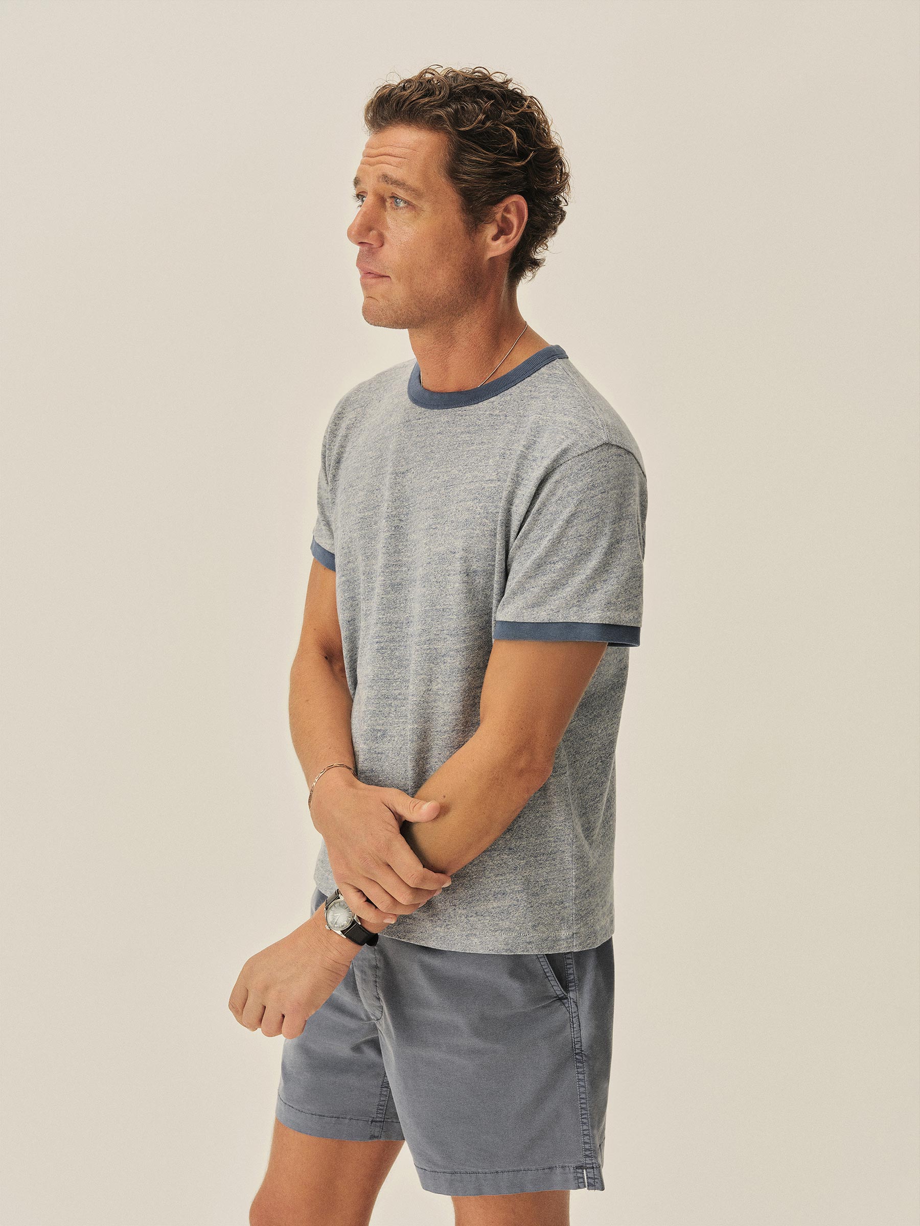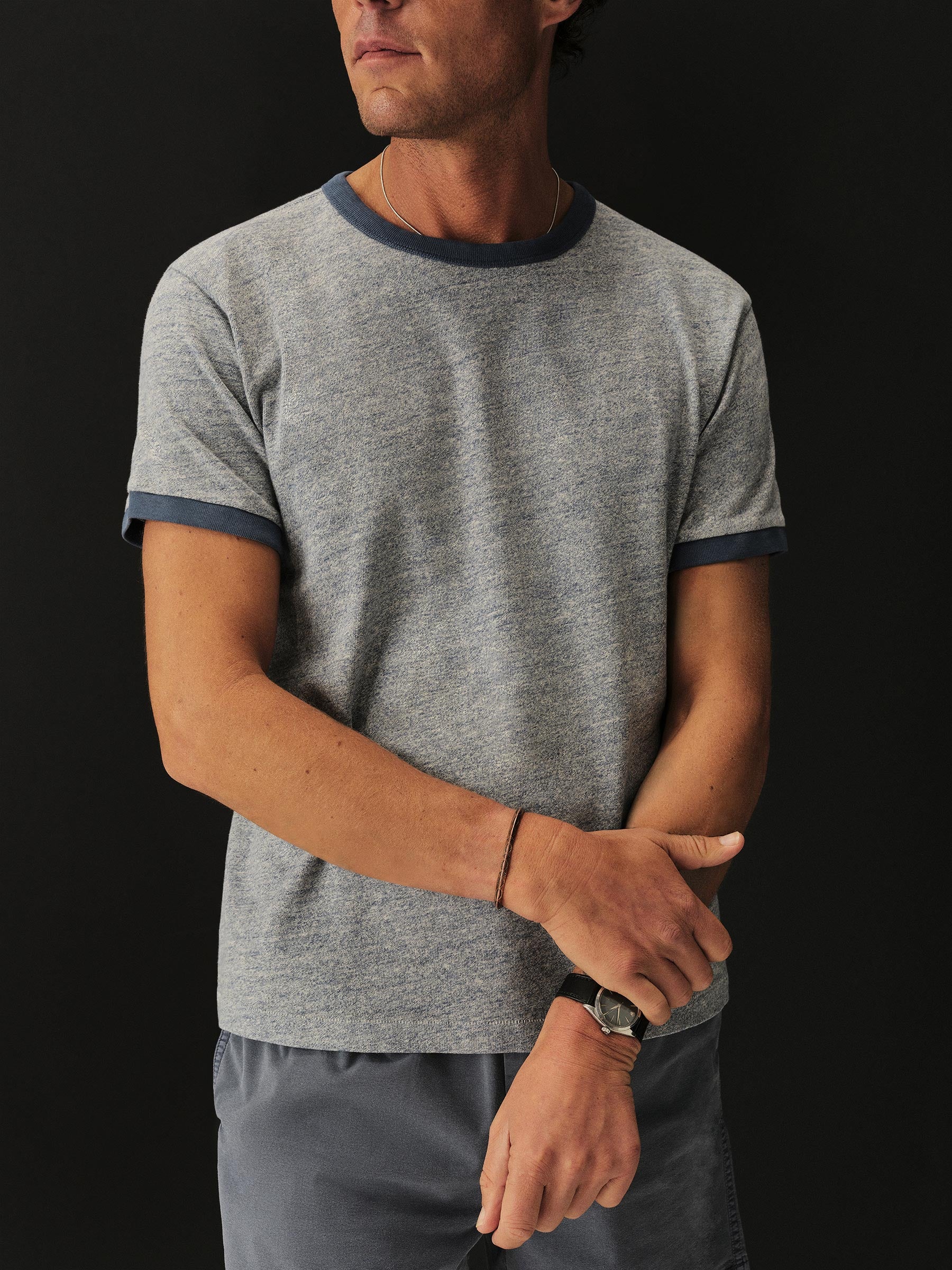 A classic fit ringer tee built from 100% cotton heather jersey with bound rib detailing.