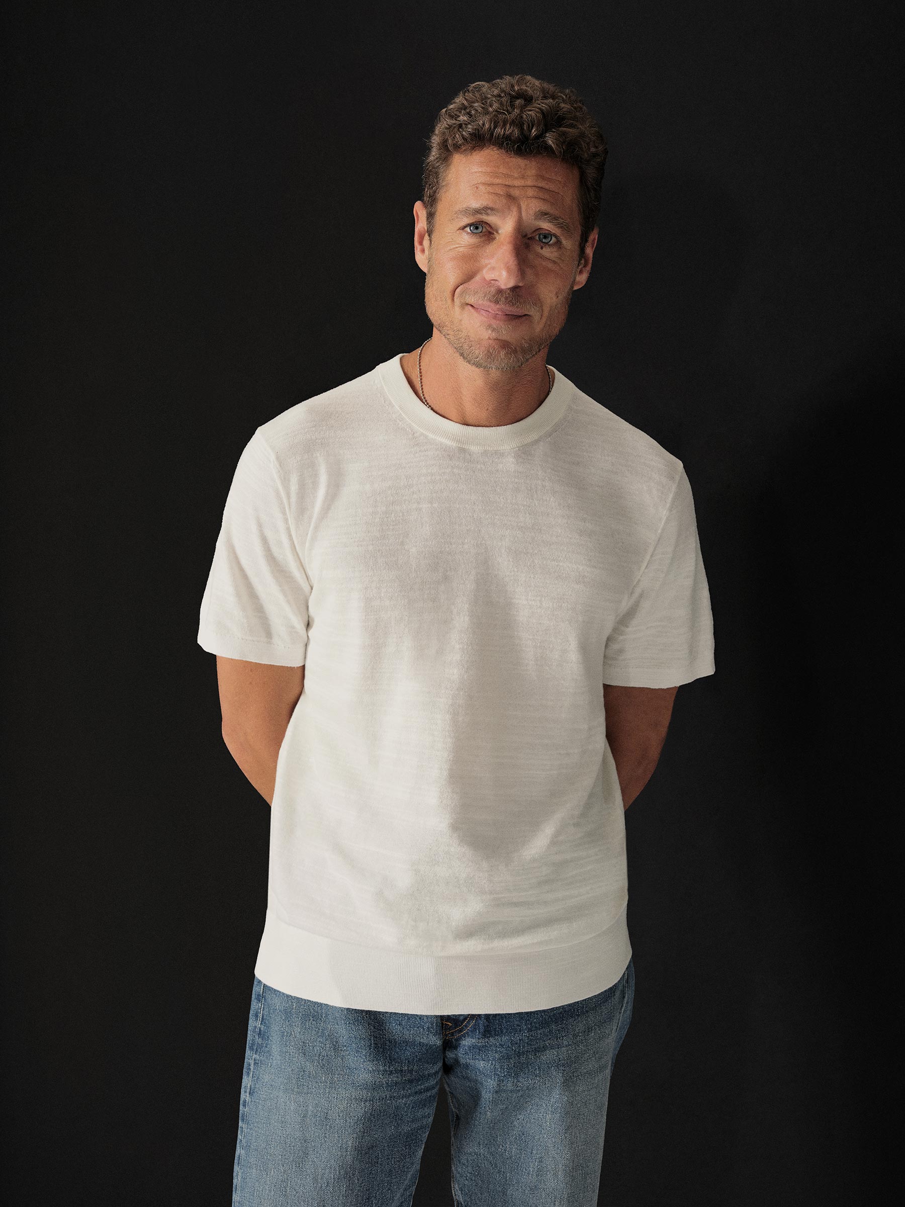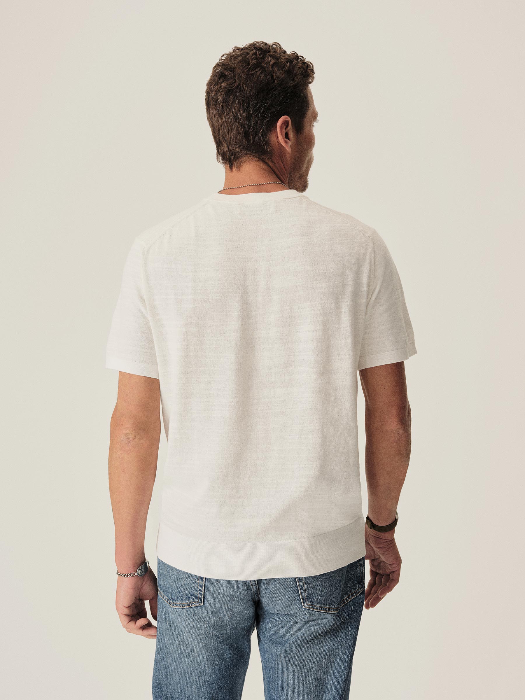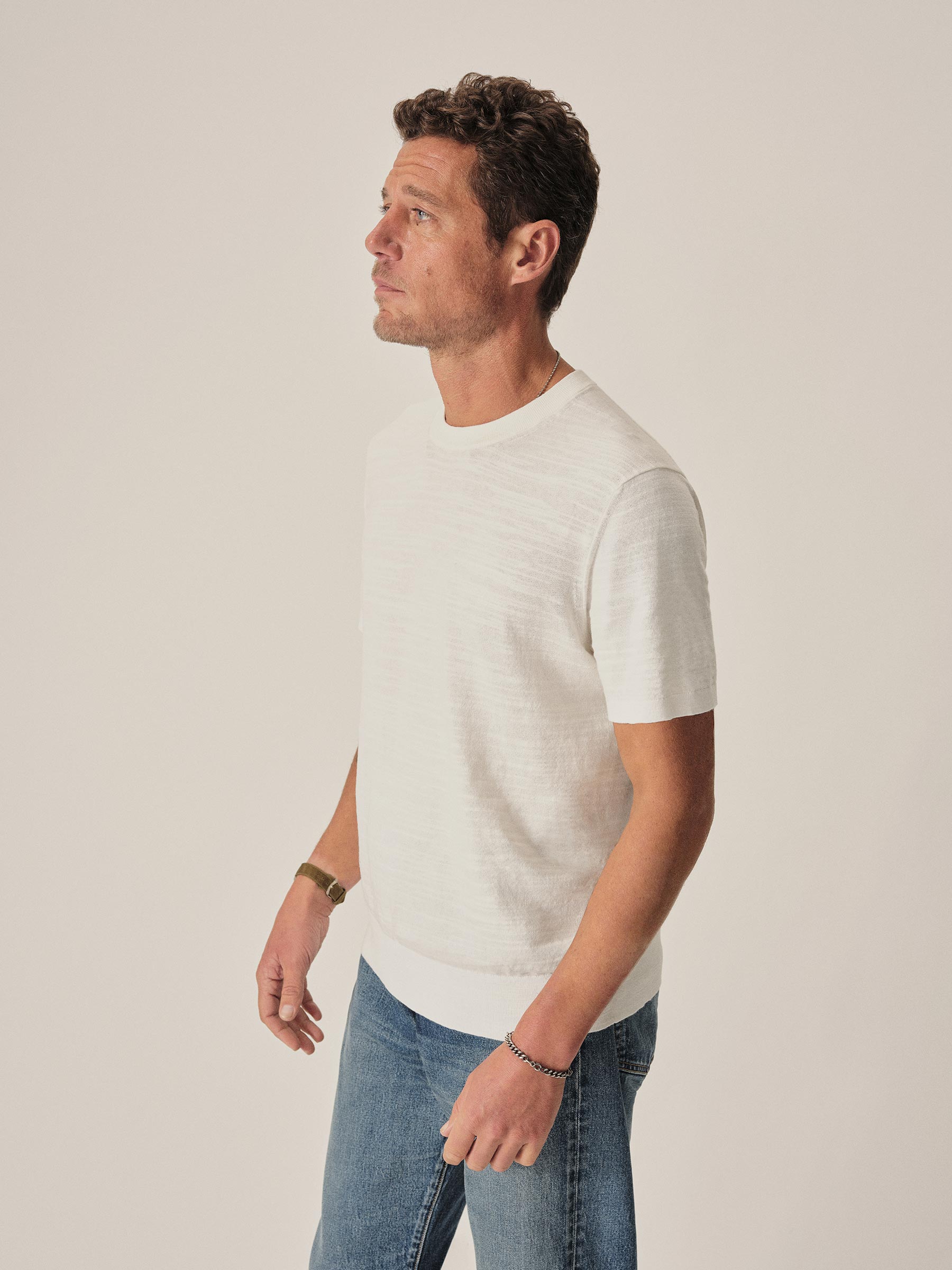 Crewneck tee sweater knit with a light slub texture that breathes easily with a crisp, refined finish.