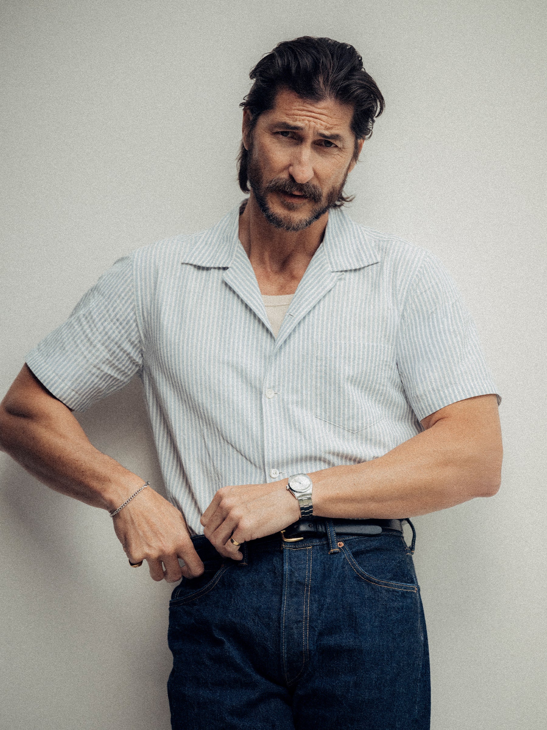 A classic midcentury style in lightweight mercerized cotton, washed for a broken-in yet structured feel.