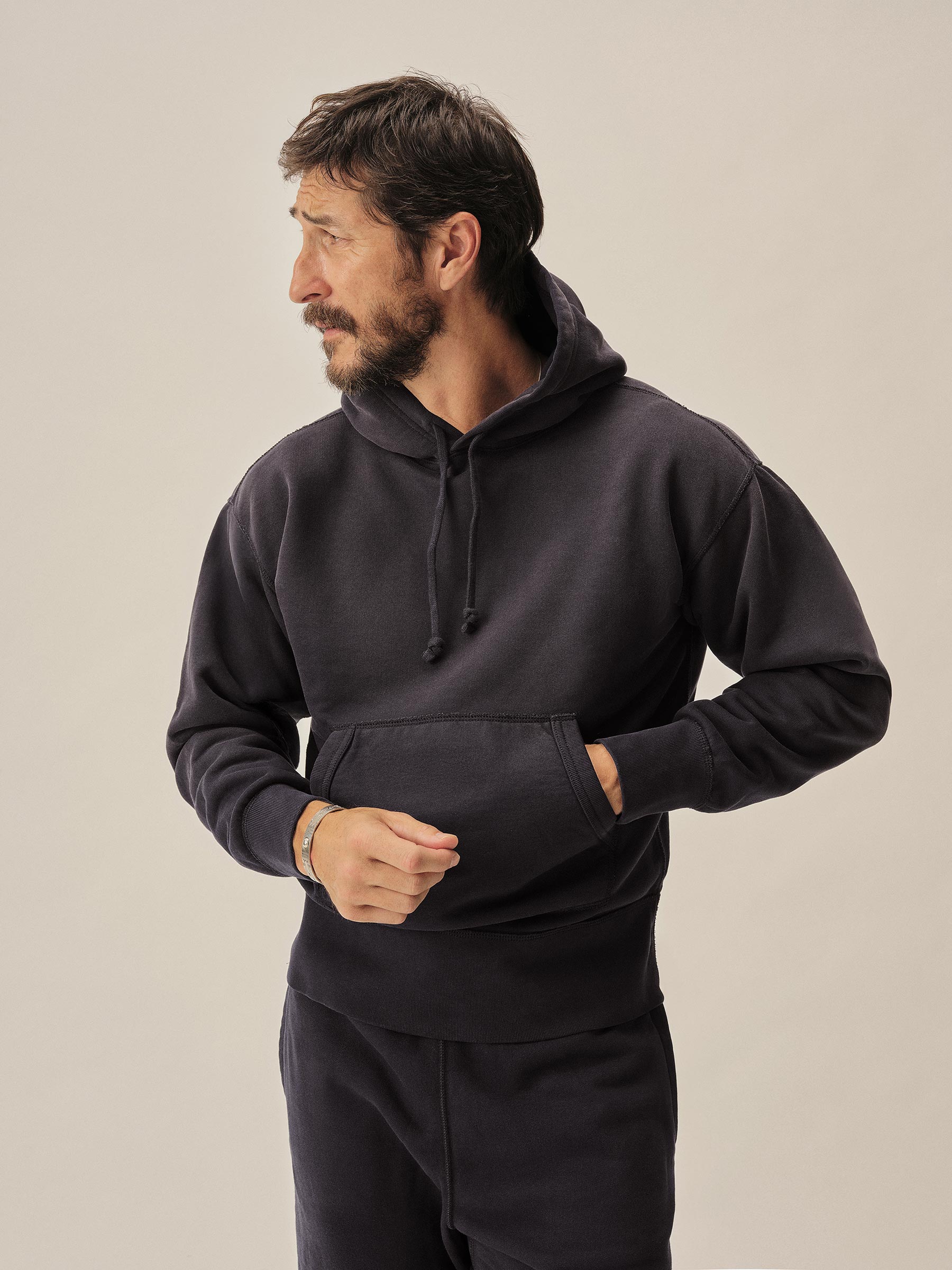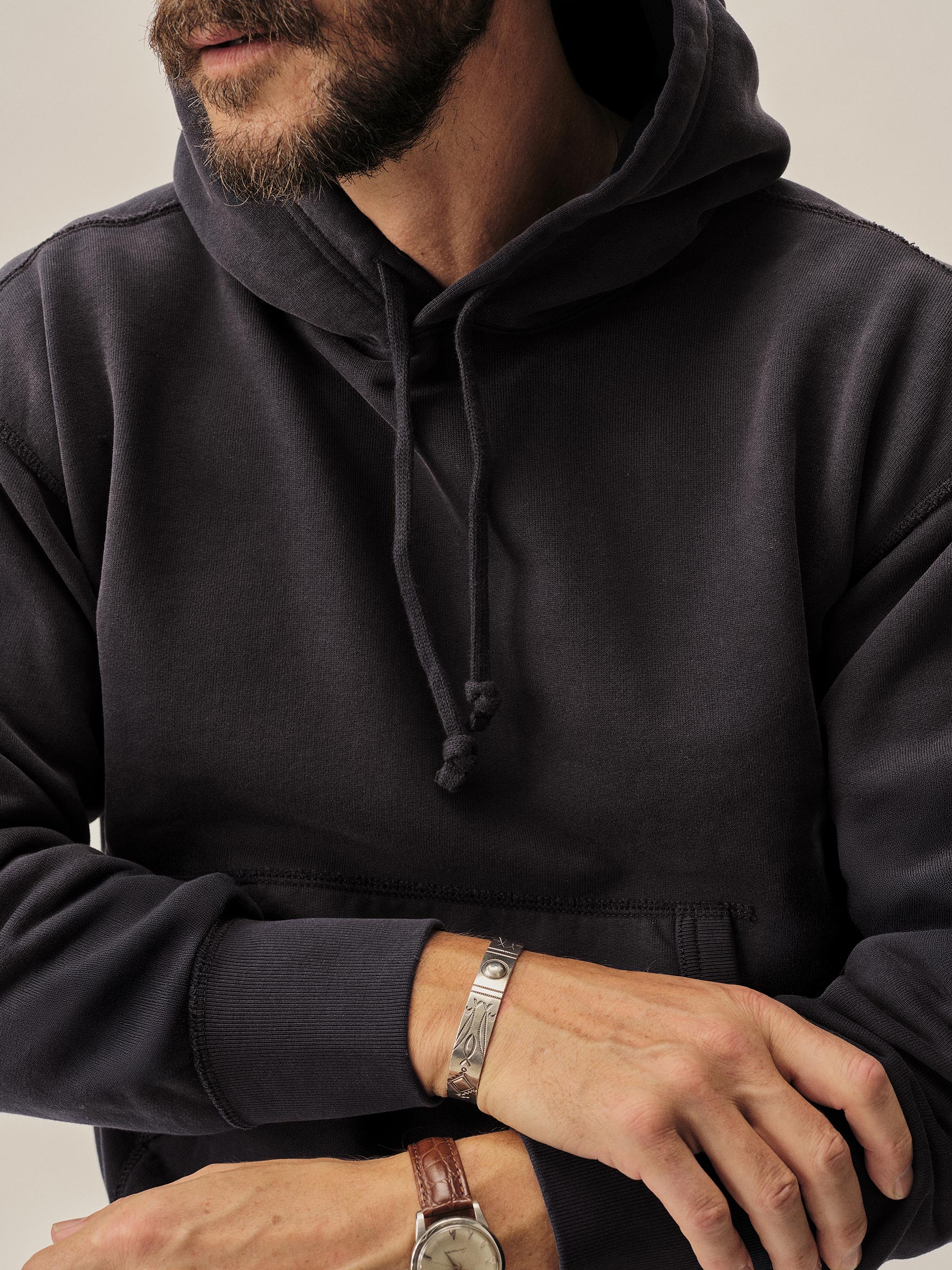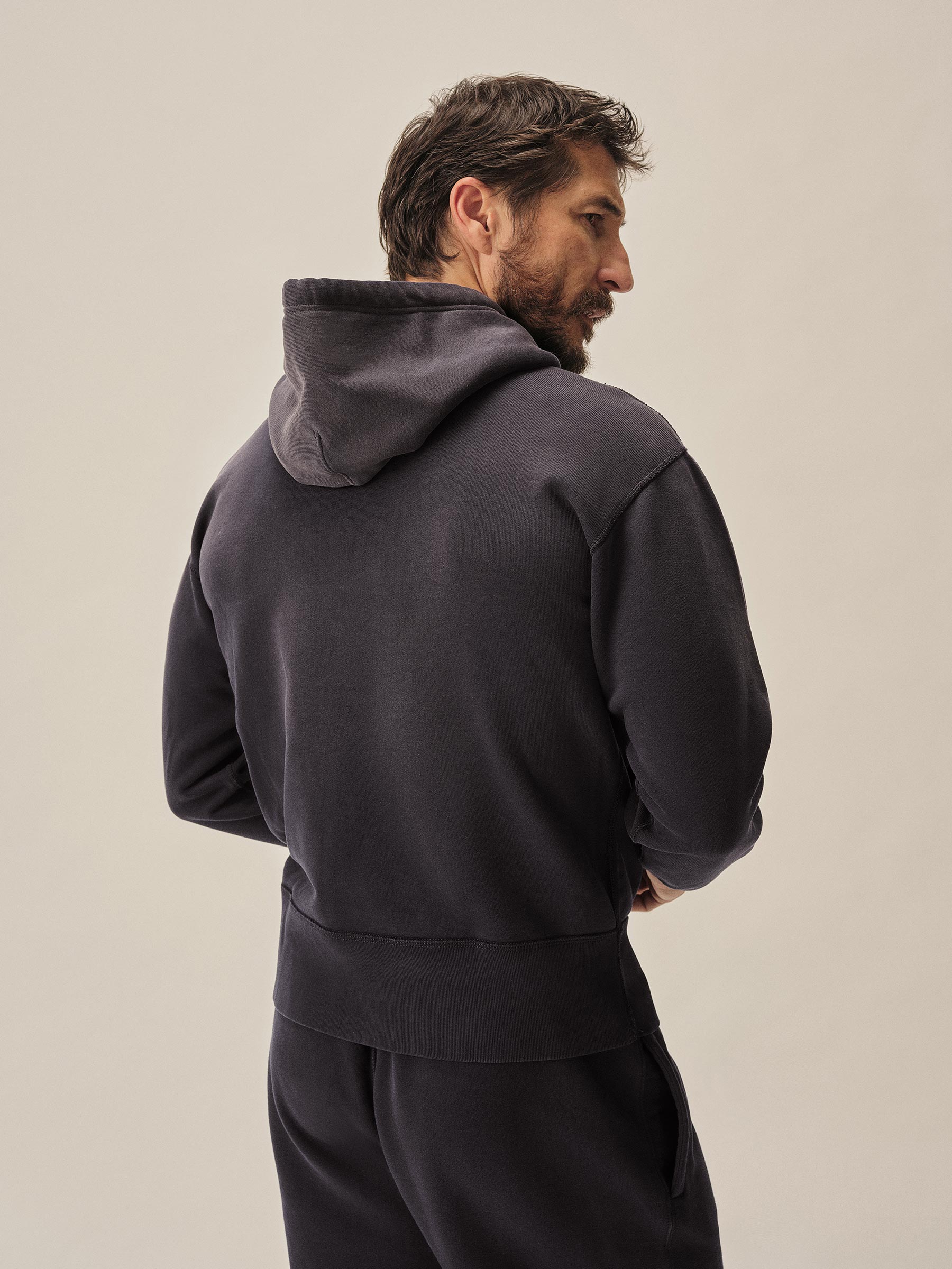 Classic midcentury-style hooded sweatshirt in our custom-milled French terry fleece.
