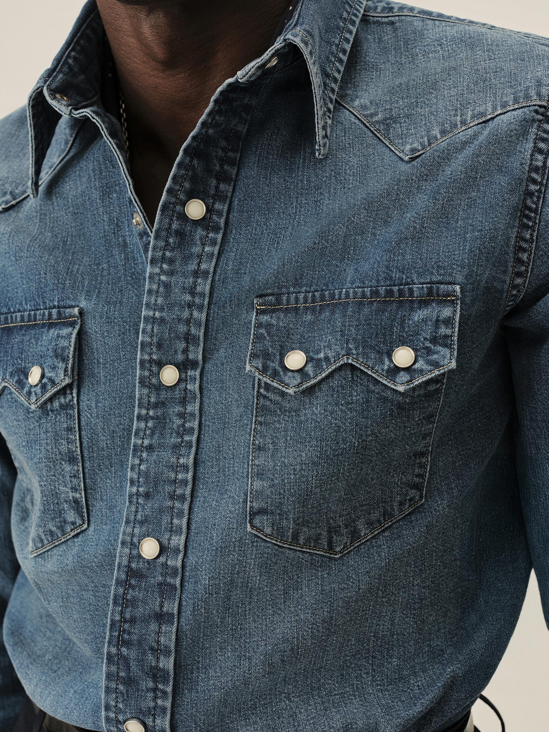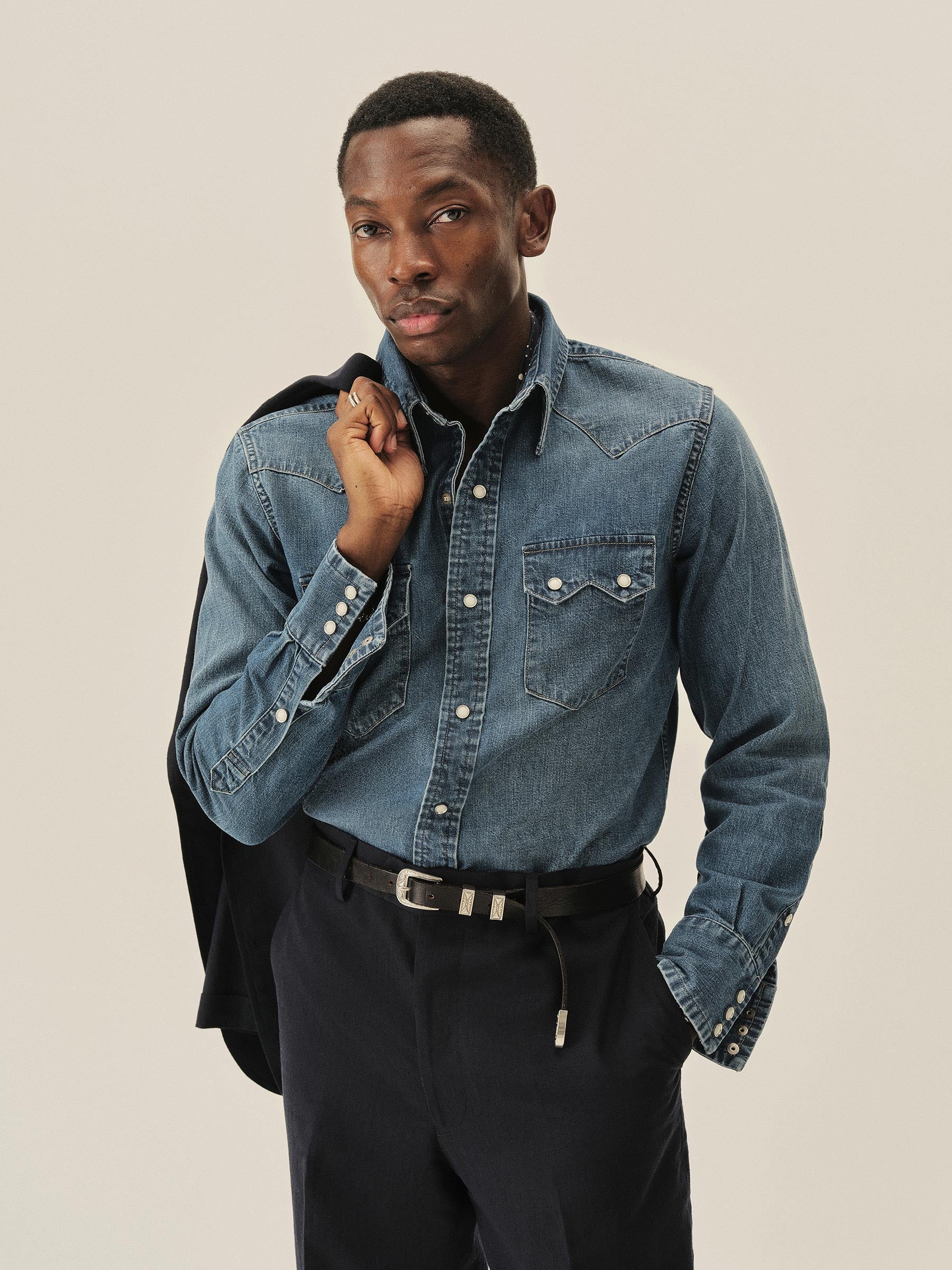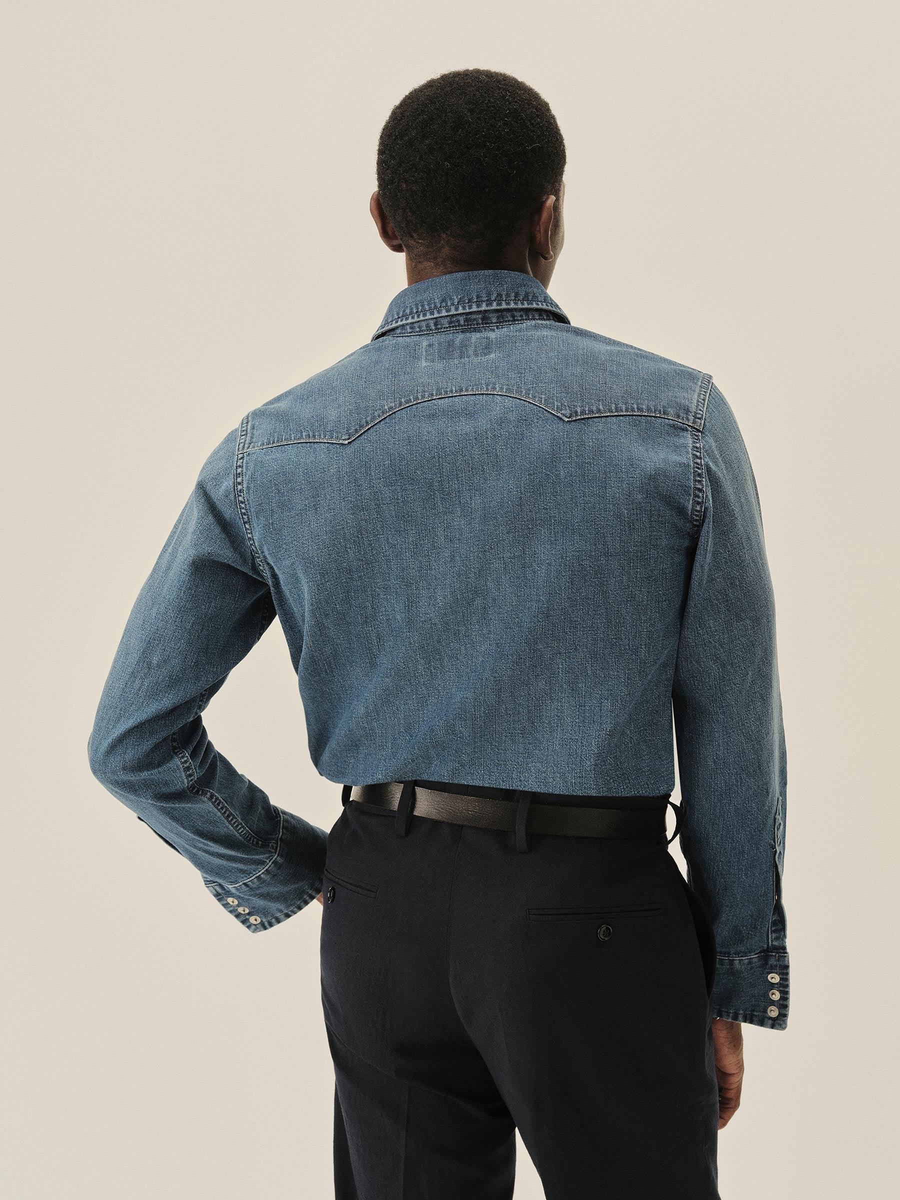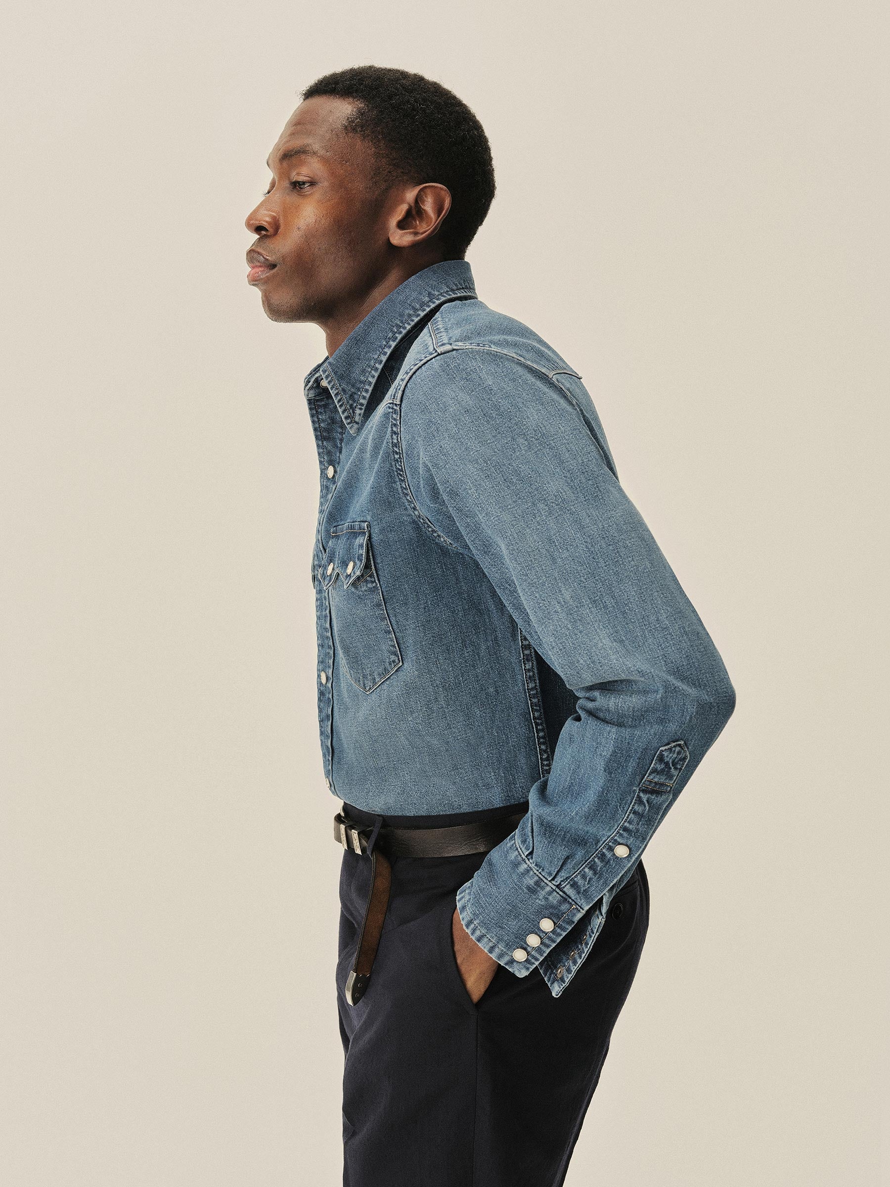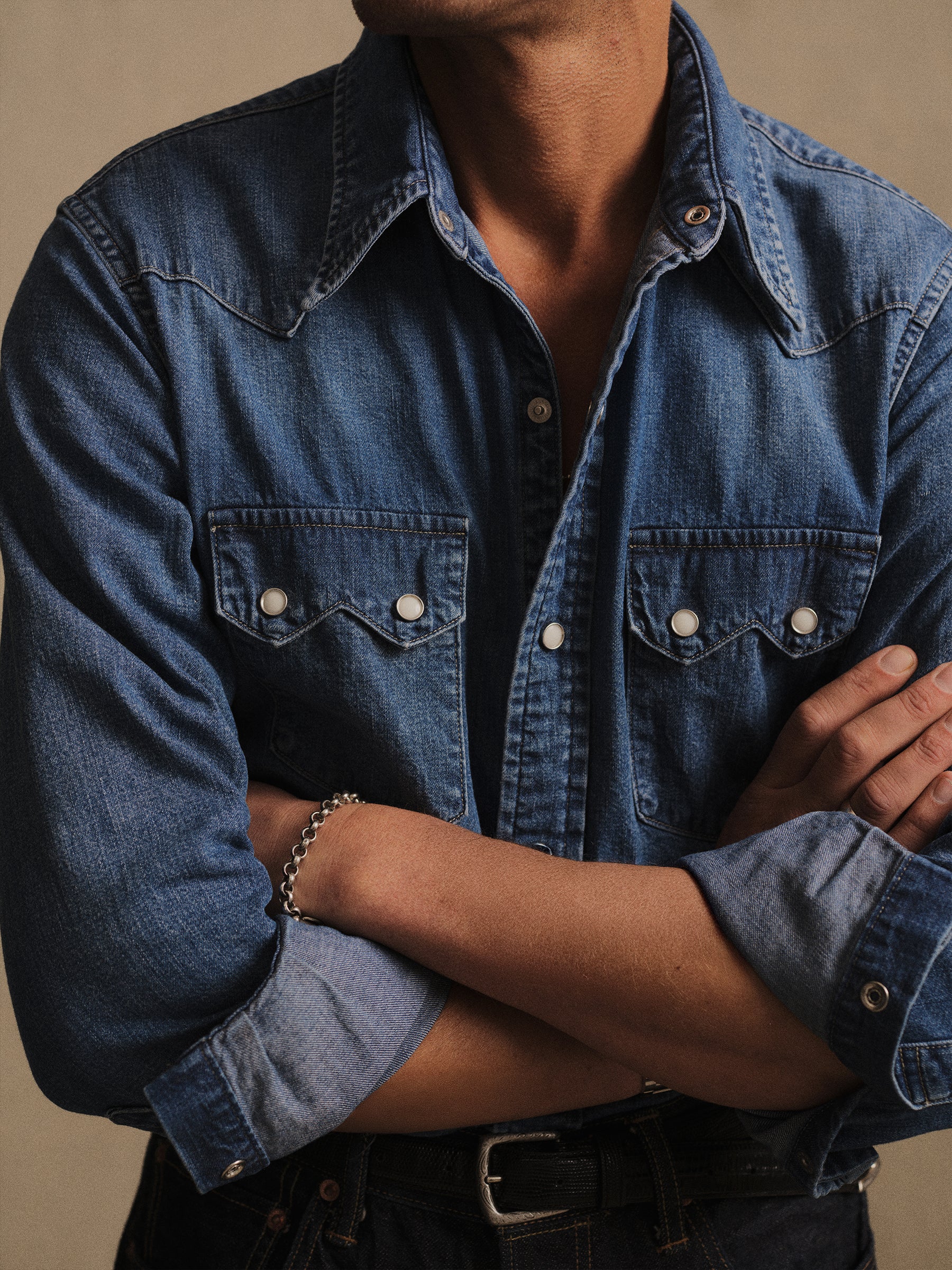 Comfortable, classic fit 1950’s style sawtooth western shirt cut from 100% cotton Japanese denim.
