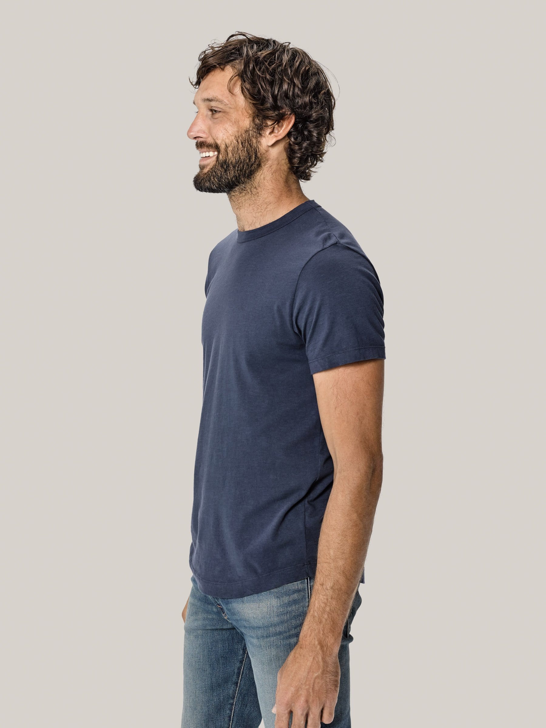 Our signature curved hem tee in USA-grown cotton with a light slub texture. Made at BM Knitting Mills in Mohnton, PA.