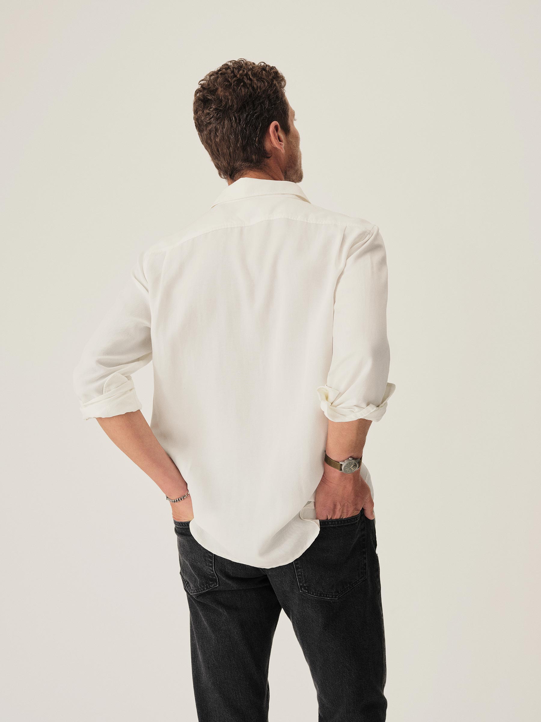 Classic fit, 1950s style lounge shirt in a silky rayon/linen blend.