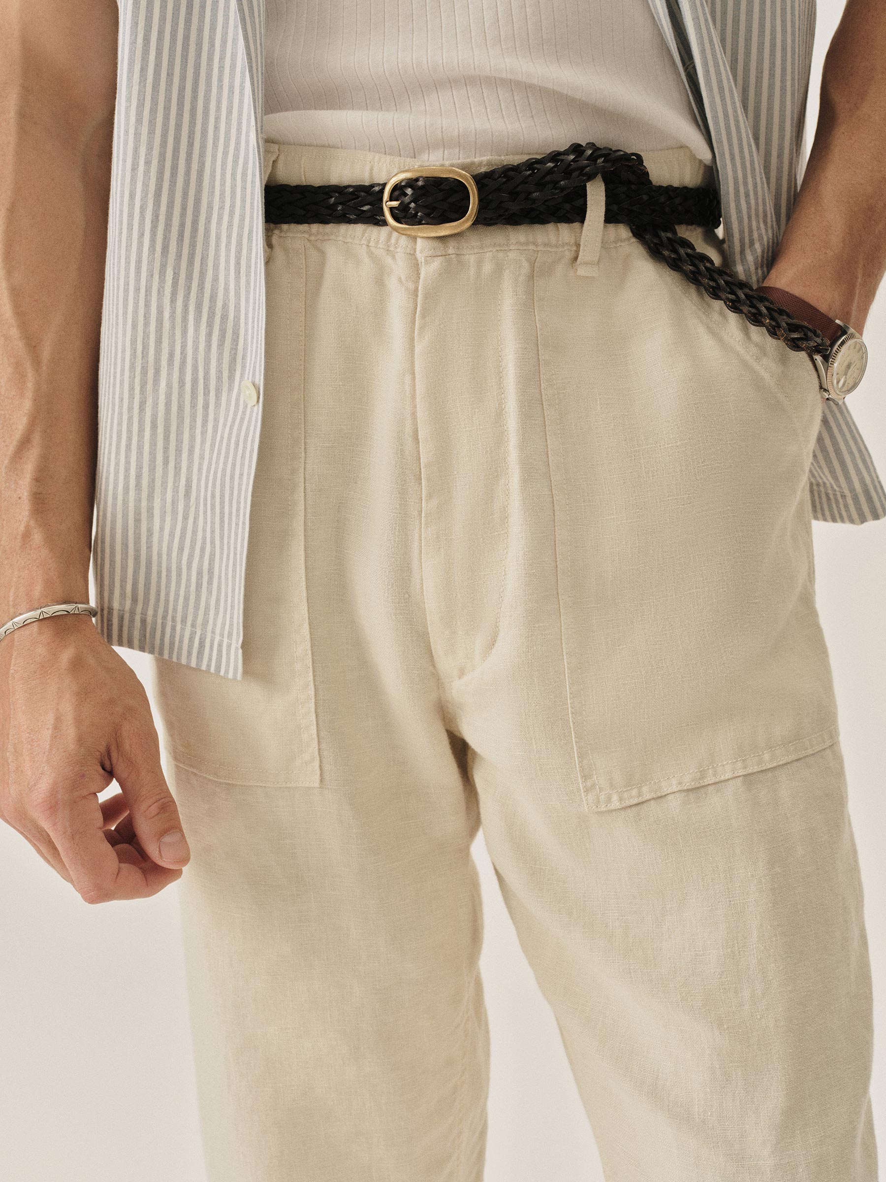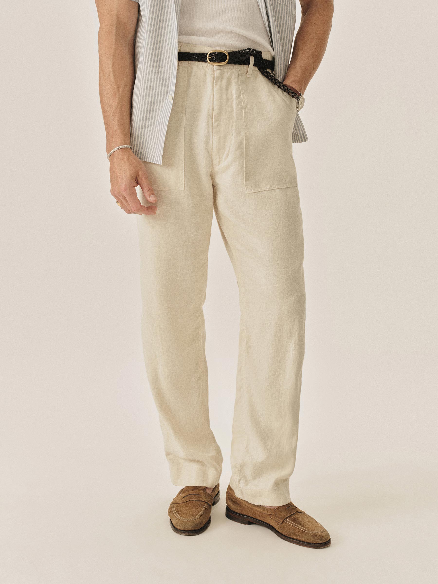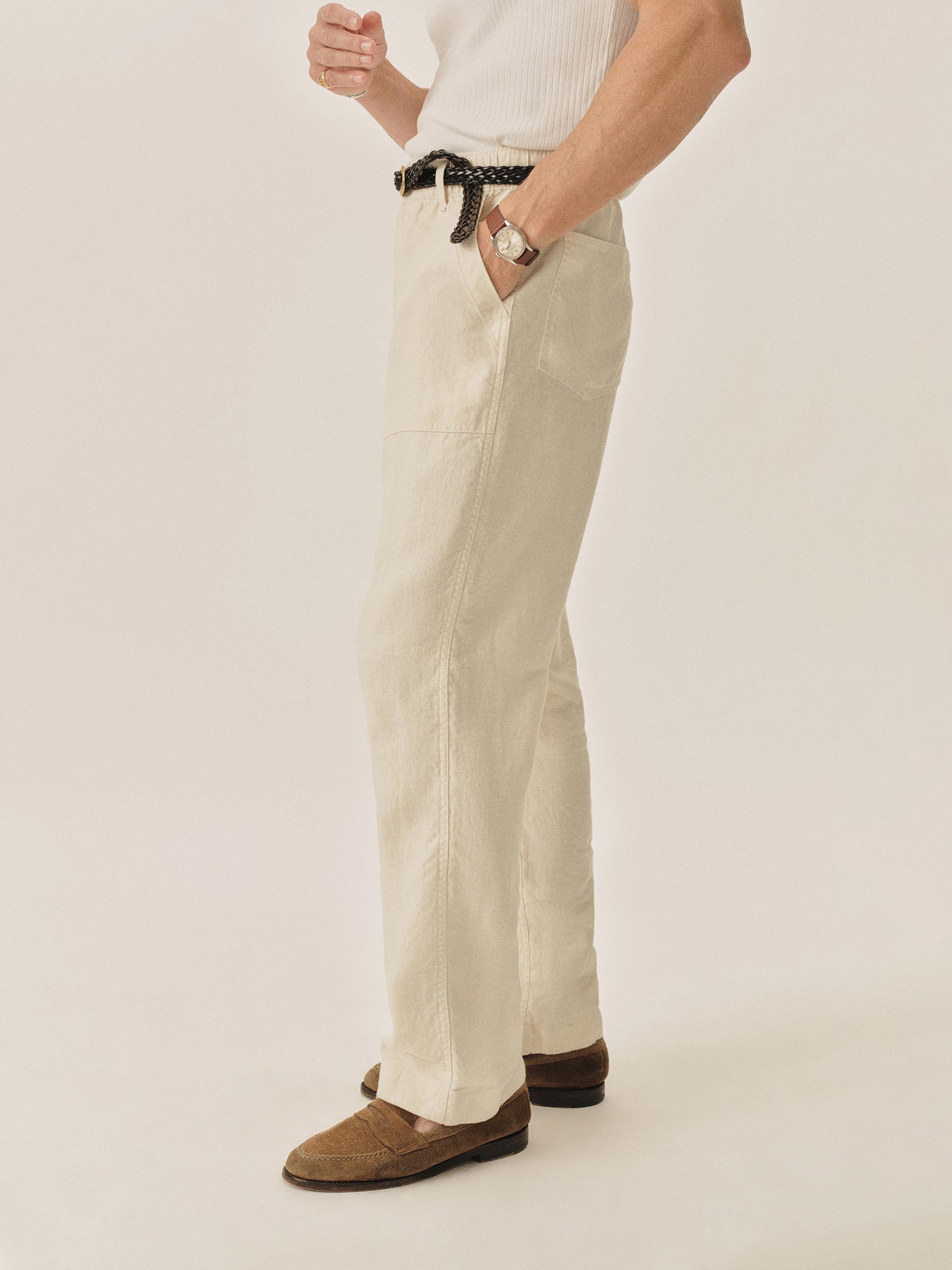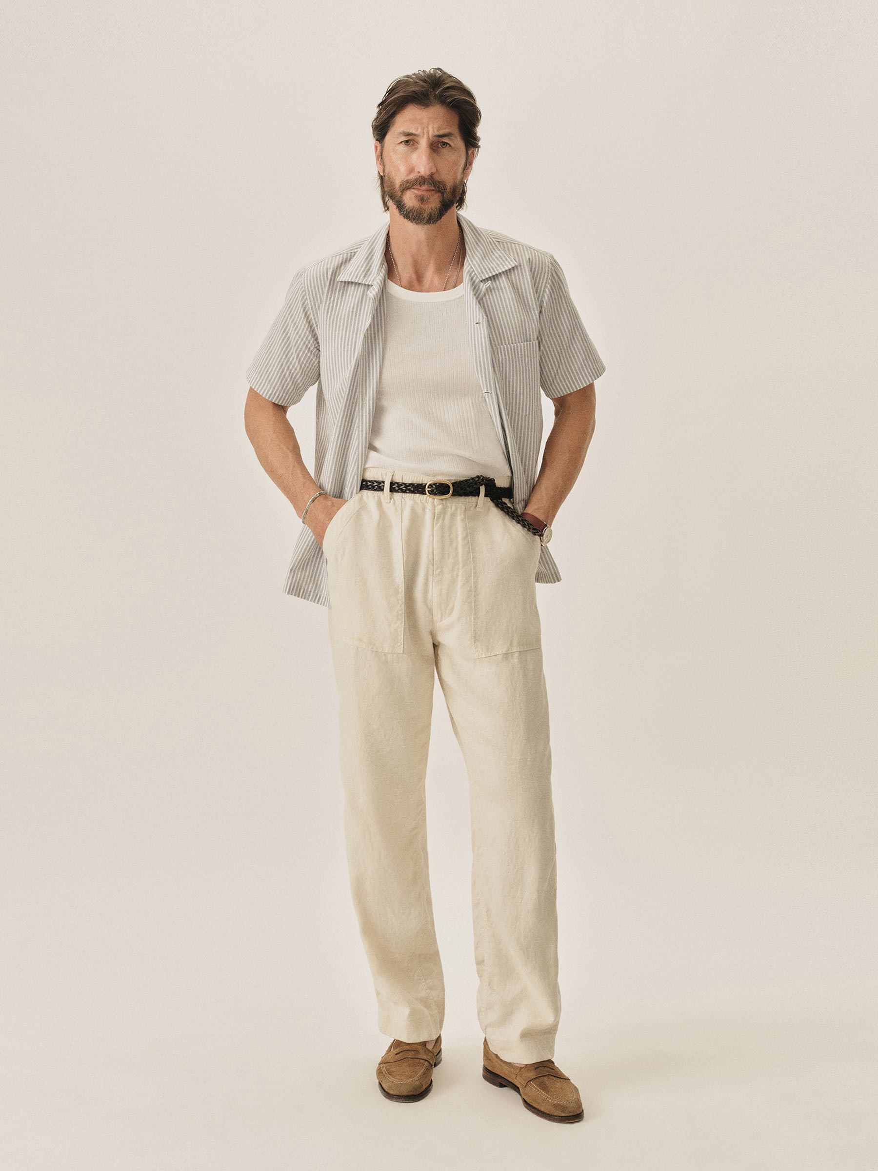 Army fatigues upgraded in lightweight linen with a comfortable elasticated waistband.
