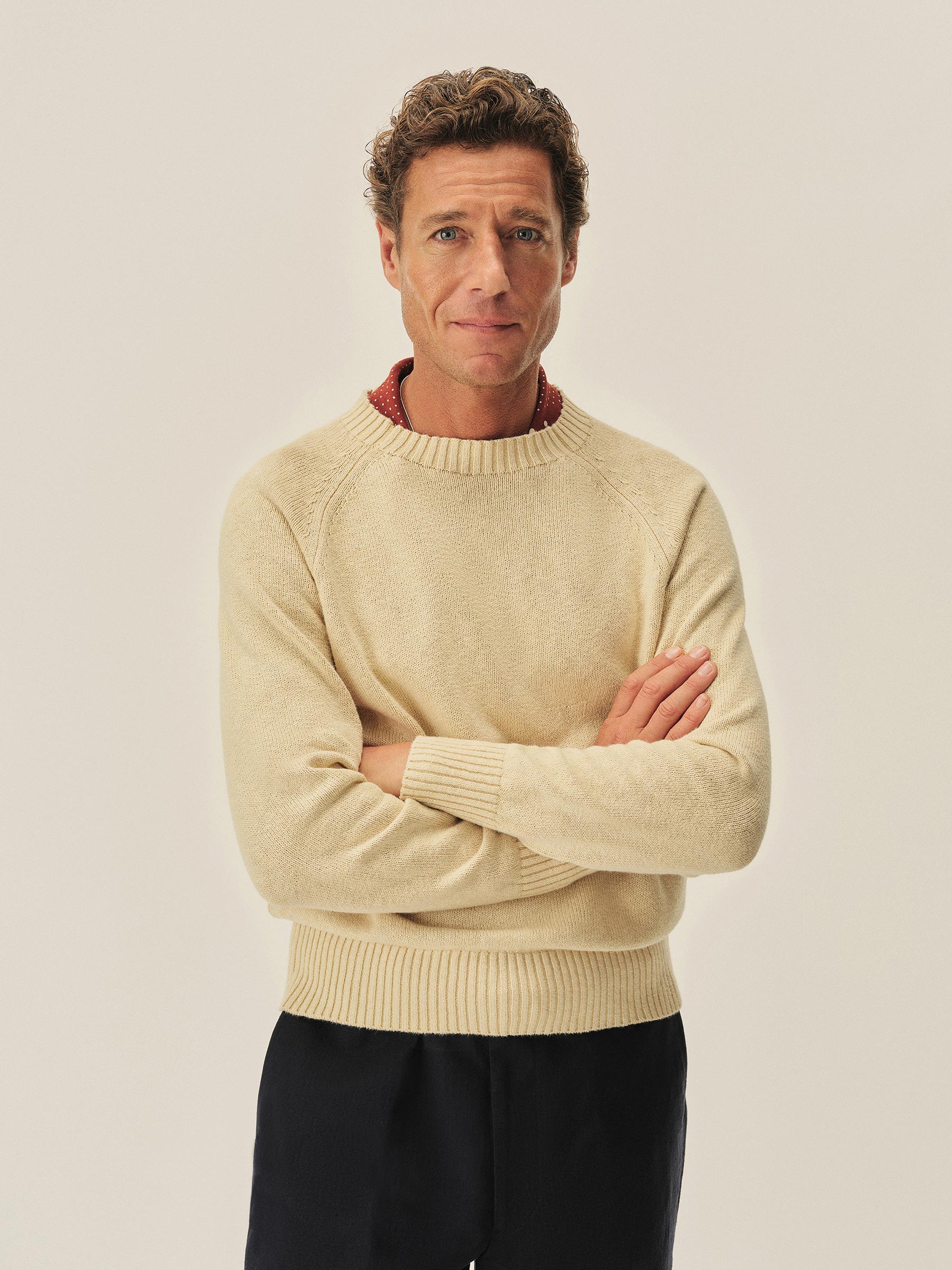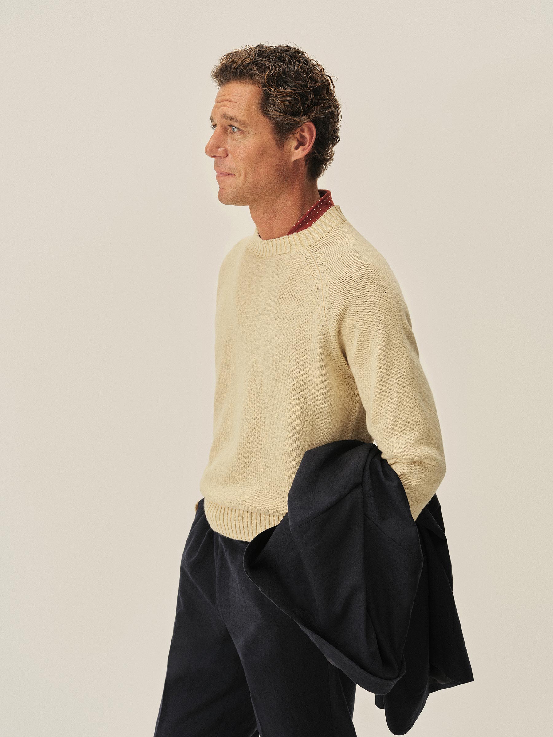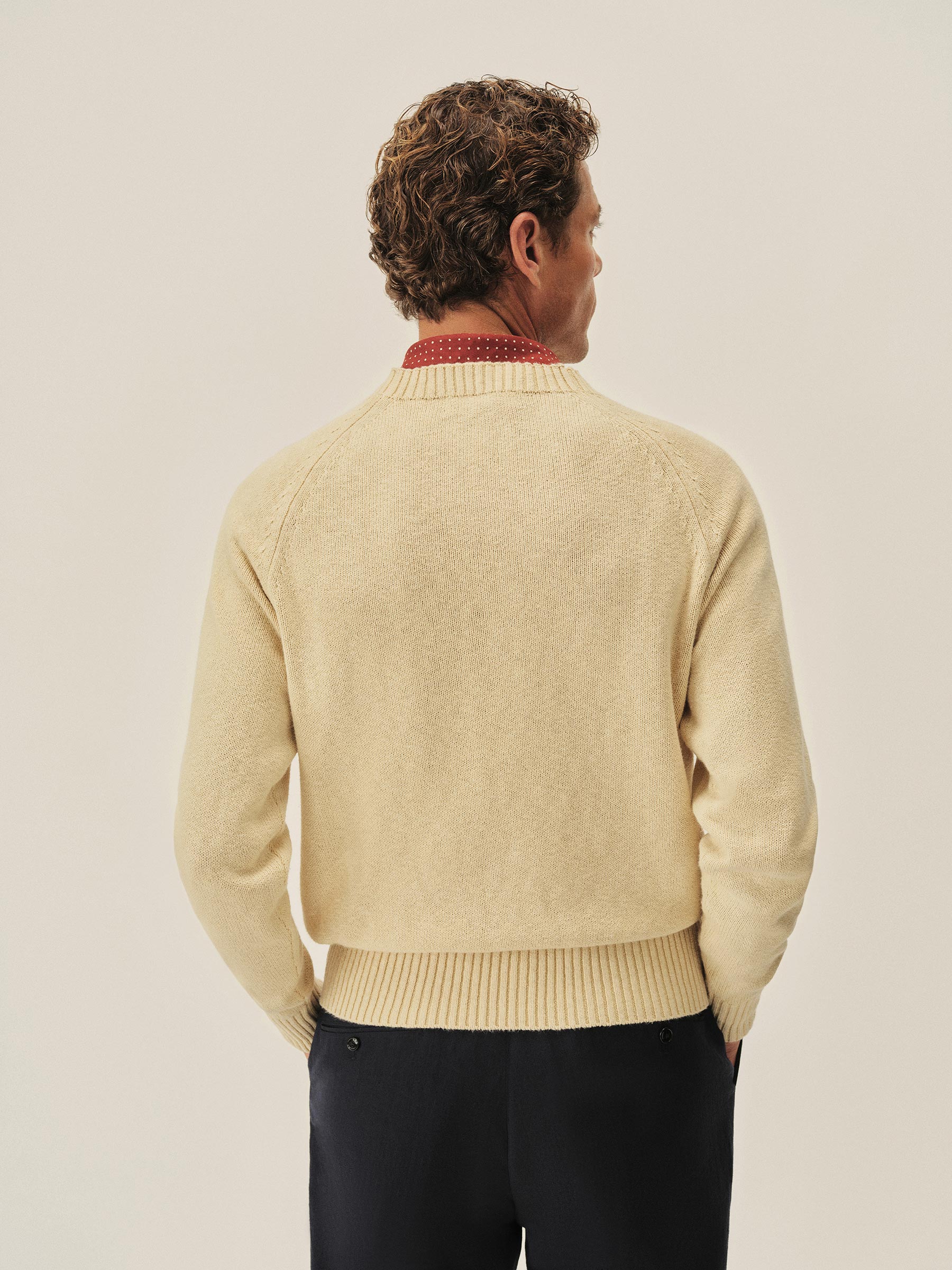 A fully-fashioned raglan sweater in slub cotton jersey, garment-dyed and washed for a soft, lived-in feel.