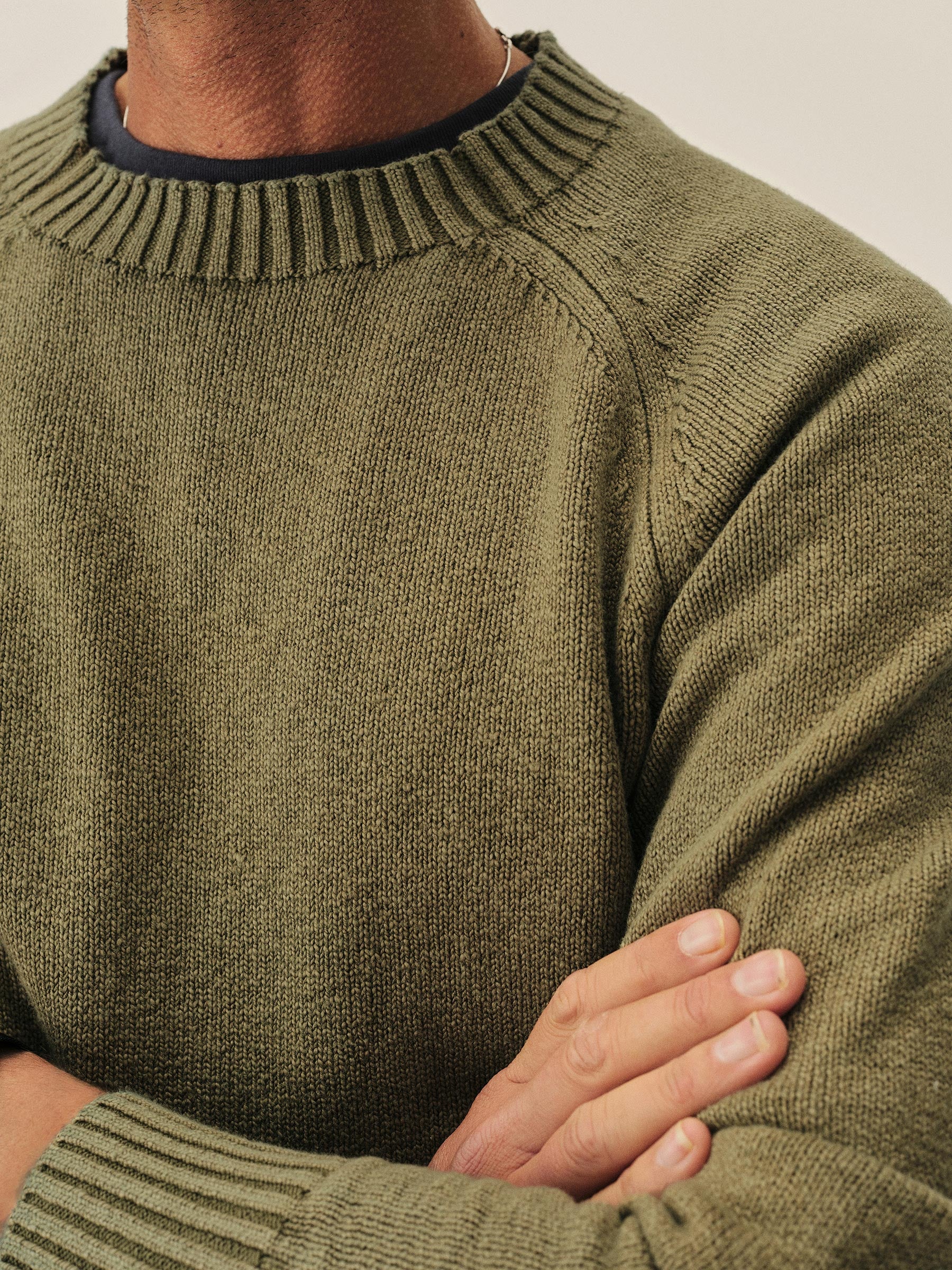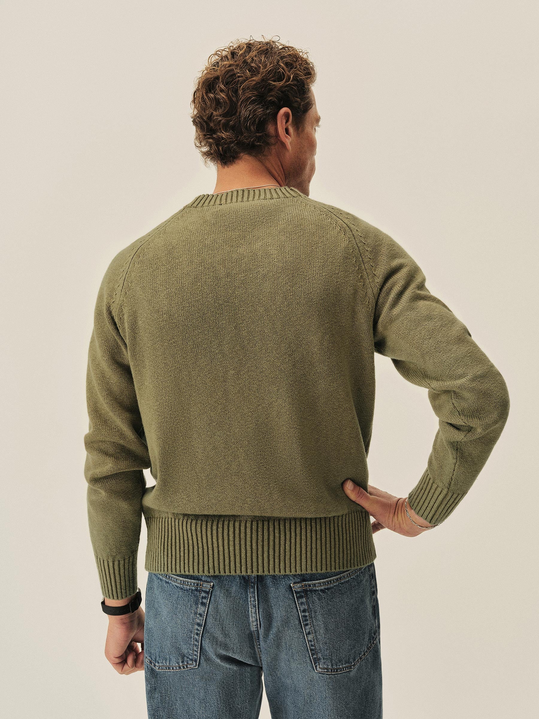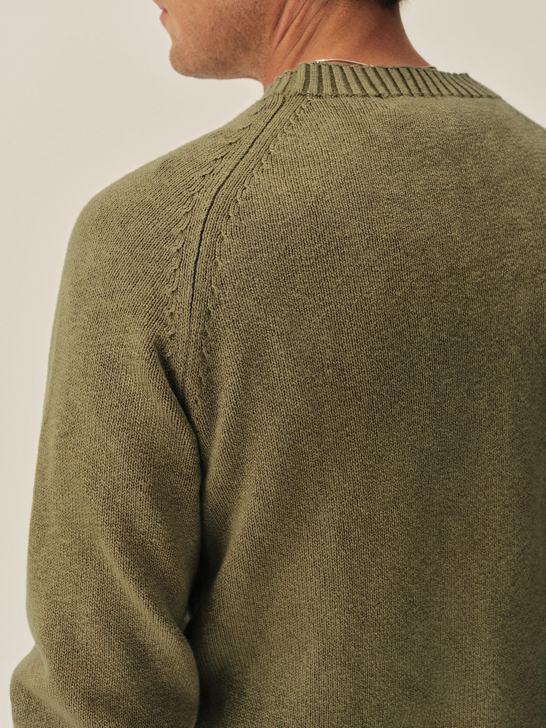 A fully-fashioned raglan sweater in slub cotton jersey, garment-dyed and washed for a soft, lived-in feel.