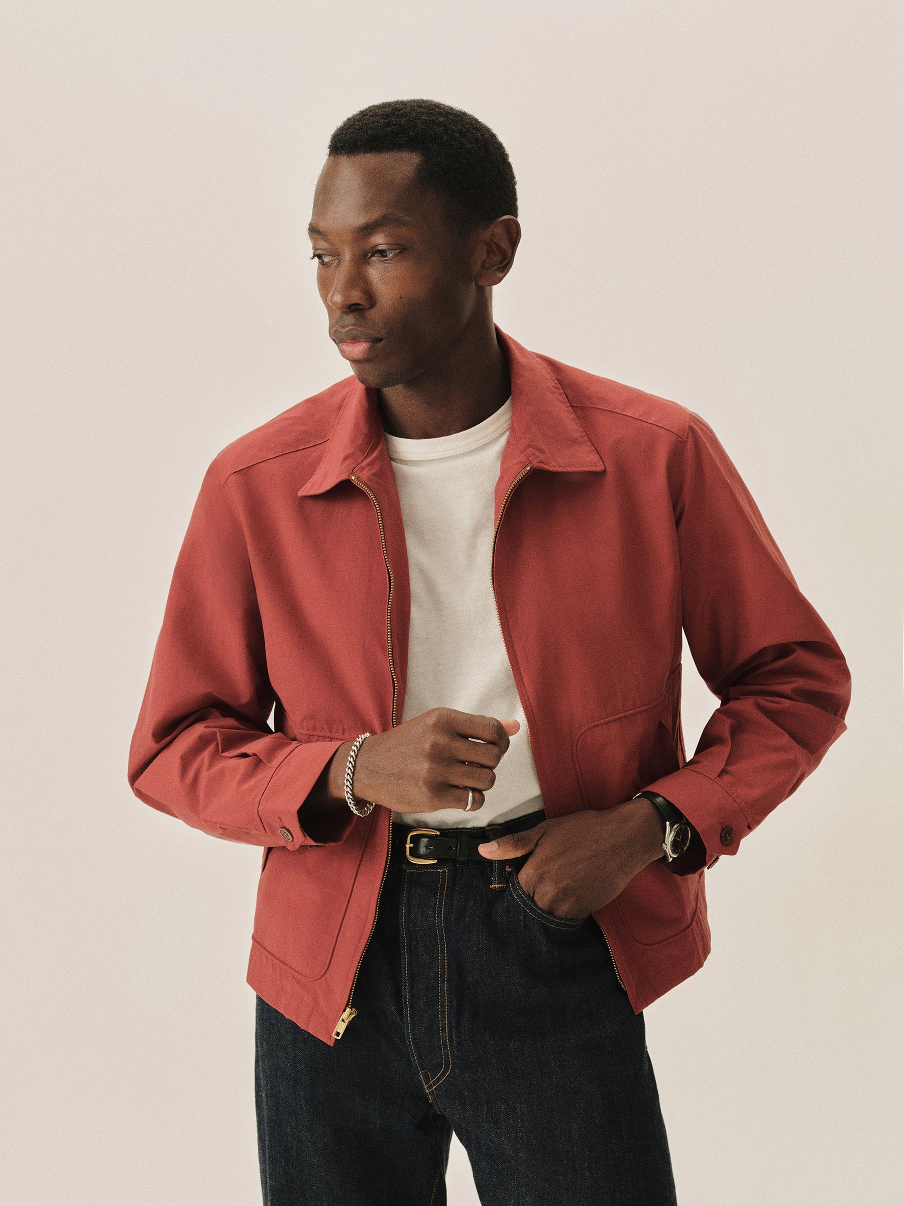 Made in collaboration with McGregor, our take on their signature 1950s sports jacket in cotton-nylon drizzler cloth.