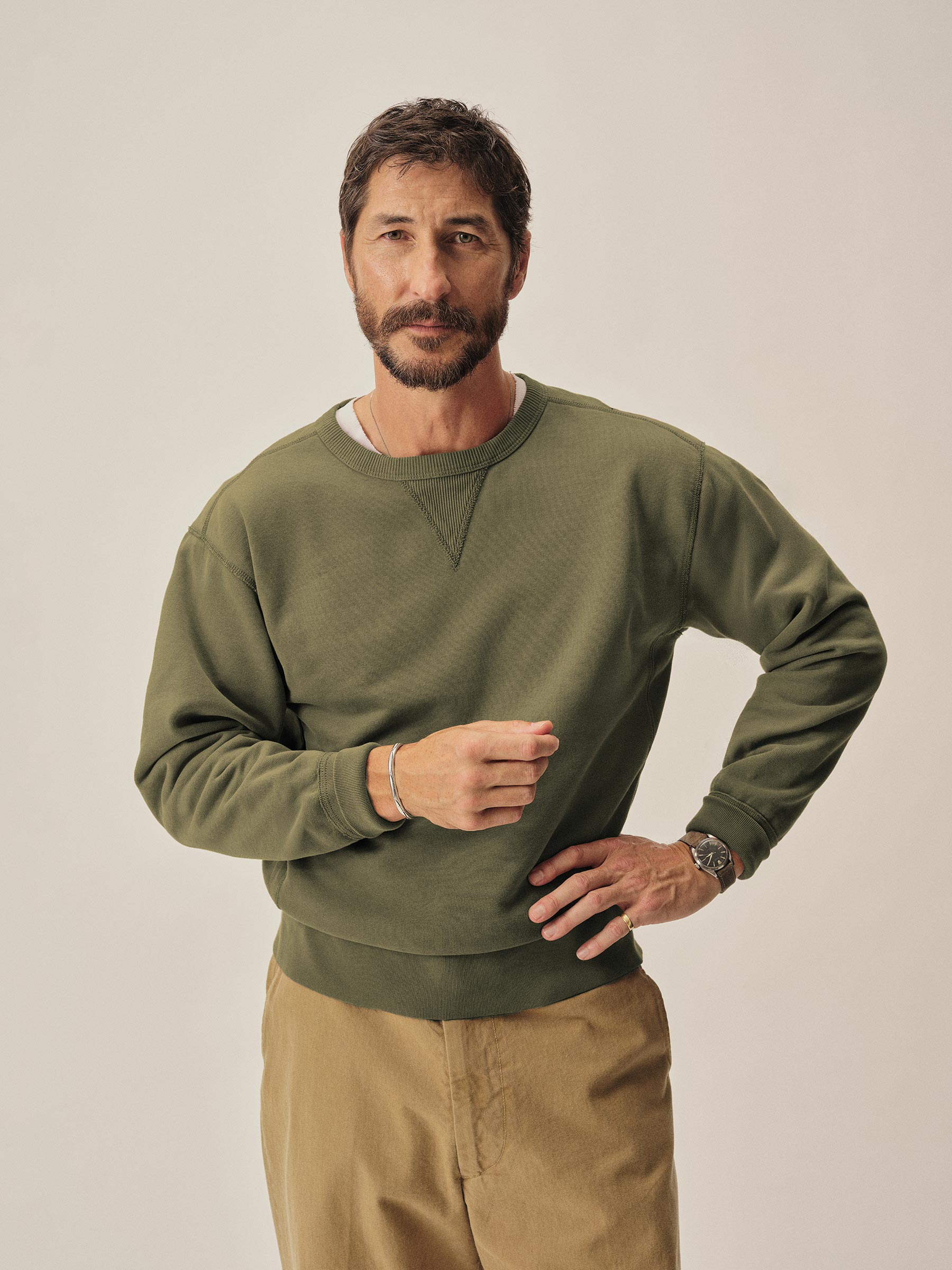Classic midcentury-style crewneck sweatshirt in our custom-milled French terry fleece.